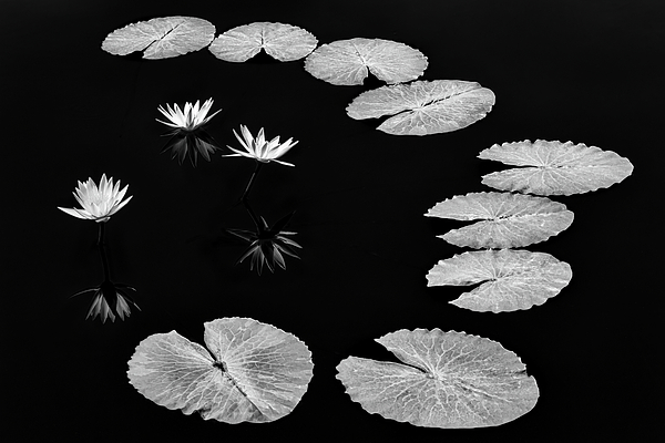 This group of water lily flowers and lily pads with invisible stems connecting them under water reminded me of close ties that some human families... more
